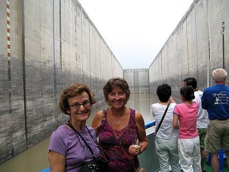 On board cruise boat going down the Yangtzi, Judith with Andrea Crown, passing