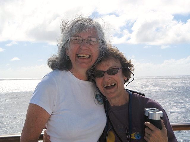 Judy Anderson and Judith, giggling girlishly.
